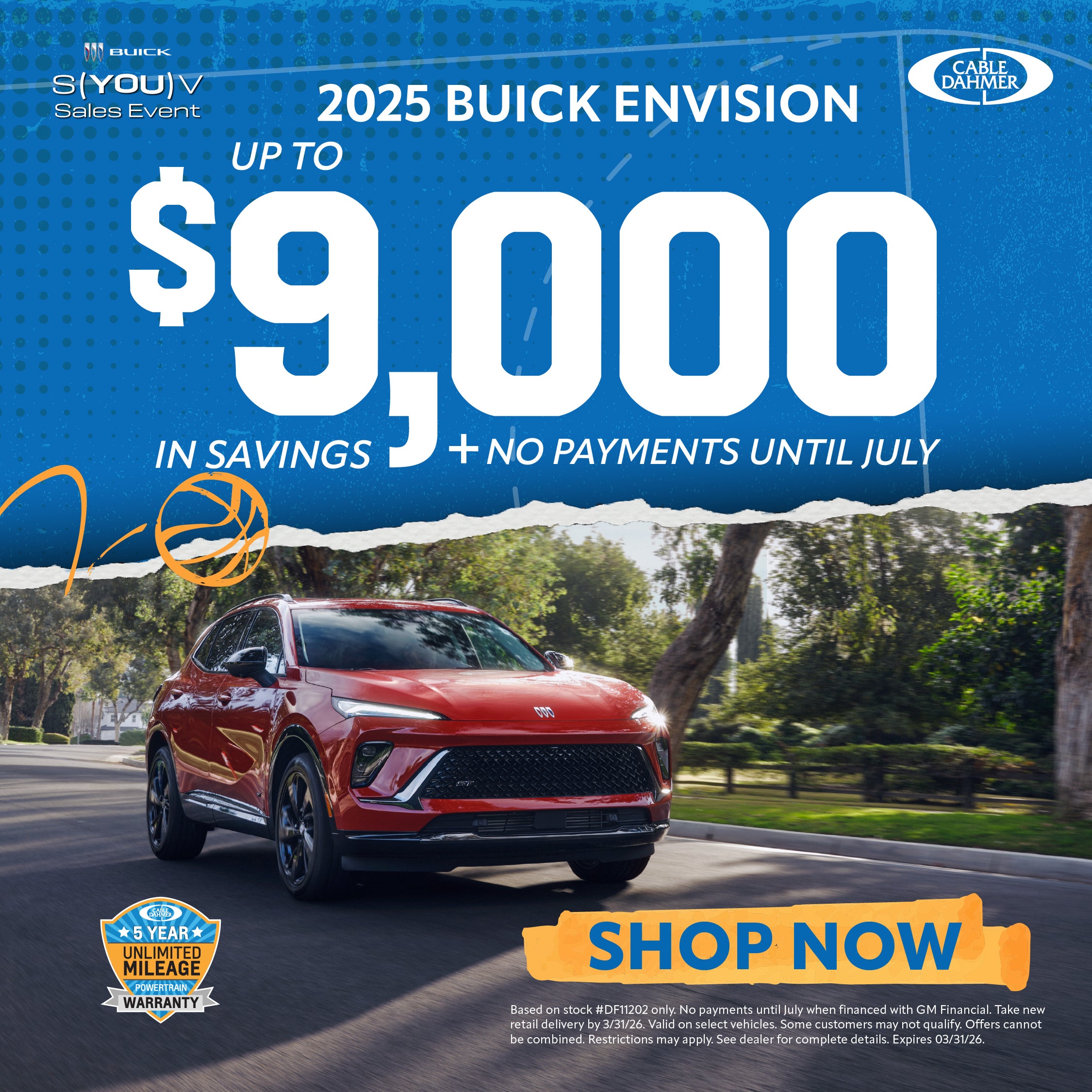 Based on stock #DF11202 only. No payments until July when financed with GM Financial. Take new retail delivery by 3/31/26. Valid on select vehicles. Some customers may not qualify. Offers cannot be combined. Restrictions may apply. See dealer for complete details. Expires 03/31/26.